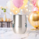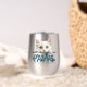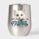 Este vaso de vino aislado tiene una linda imagen combinada con un mensaje inspirador. Un adorable gatito blanco de ojos azules asoma sobre una cornisa. El texto de abajo dice "PAWS y disfrute de las pequeñas cosas" con huellas de pata por todas partes. La imagen se imprime dos veces, con su nombre, monograma u otro texto personalizado en el centro.