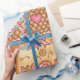 Un chico con pan de jengibre y un chica decoran este lindo papel de Navidad. El diseño es de arte original.