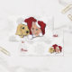 Ilustracion de la Vintage. Feliz Navidad. Imagen de mascotas con dos peludos amigos animales, un adorable perro cachorro recién recuperado y un lindo naranja tabby cat o gatito, ambos llevan gorras de Santa Claus para celebrar la temporada invernal. ¡Los mejores amigos para siempre!