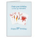 Tarjeta de cumpleaños 37 para alguien que ama jugar cartas. Un flujo real de corazones y las palabras 'Espero que tu cumpleaños salga por encima de las bombas'. ¡Les encantará esta tarjeta de cumpleaños!