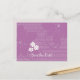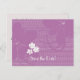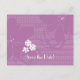 Flores blancas sobre un fondo pastel púrpura decoran esta tarjeta postal de anuncio "Guardar la Fecha" con clase.  El reverso tiene letras negras sobre un fondo rosa pálido.  ¡Muy elegante!  El texto predeterminado es para un cumpleaños 60, pero puede cambiar fácilmente el texto para nombre, edad, fecha, ubicación, etc.  Todos los derechos reservados © 2014 Alan & Marcia Socolik.