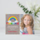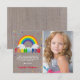 Tarjeta de agradecimiento de cumpleaños infantil rústica con un arcoíris mágico, una foto de la niña o niño que cumple años, estrellas coloridas dispersas y un mensaje de agradecimiento que se puede personalizar para todos aquellos que ayudaron a celebrar tu día especial.