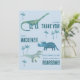Es hora de agradecer a tus invitados por una fiesta de cumpleaños salvaje. Un grupo divertido de adorables dinosaurios, listos para personalizar con el nombre de tu hijo y mensaje de agradecimiento. Ideal para niños o niñas de cualquier edad. La parte trasera presenta un patrón de dinosaurio a juego. Arte original de Nic Squirrell.