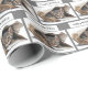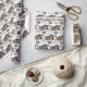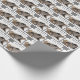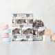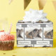 Obra acuarela de un lindo gato tabby en una bolsa de papel y fondo gris con texto de cumpleaños feliz. Se puede cambiar el color de fondo.