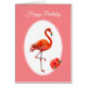 Tarjeta de cumpleaños de hermoso flamenco rosa. Todos los textos están listos para ser personalizados.