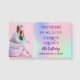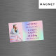 Un magnético moderno y elegante Guardar la fecha para una fiesta de cumpleaños (cualquier edad). Fondo holográfico, rosa, color verde de menta morado. Personalice y agregue una foto, fecha y nombre.