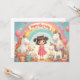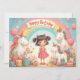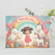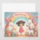 Un bonito diseño de cumpleaños con unicornios, un arco iris, regalos y un chica sonriente, perfecto para los productos infantiles, invitaciones o decoración de guardería.
