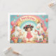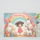 Un bonito diseño de cumpleaños con unicornios, un arco iris, regalos y un chica sonriente, perfecto para los productos infantiles, invitaciones o decoración de guardería.
