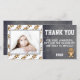 Cuta tarjeta de agradecimiento de cumpleaños para agradecer a sus invitados. La tarjeta tiene un lindo patrón de oso de peluche y un pequeño oso de peluche. Personaliza la tarjeta con tu foto y nombre. También puede cambiar el texto de agradecimiento y escribir el suyo propio. El texto es de diseño y blanco moderno. El fondo es una textura moderna de pizarra gris. Tema del oso de peluche.