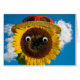 Girasol con un gorra y gafas de sol rojas para el cumpleaños general.