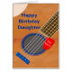 Una tarjeta de cumpleaños para una hija que ama la guitarra. Un primer plano de una guitarra con un plectrum colgado en las cuerdas. En el plectrum están las palabras 'You Rock'. Una tarjeta de cumpleaños para un músico que ama la guitarra.