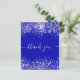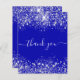 Color de fondo azul real. Decorada con polvo falso purpurina de plata. En el frente del gran guión con letras de mano blanca y el texto: Gracias. Atrás: Personaliza y agrega tu nota de agradecimiento y nombre. Gracias está escrito con una escritura de estilo con letras a mano moderna con toques. Para que los cambios sólo eliminen el nombre del ejemplo, deje los espacios o la emoji delante y después del nombre.