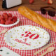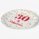 Celebre el gran día con estos platos de papel rojos y dorados. Puede cambiar el color y el tipo de letra.
