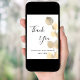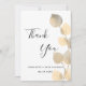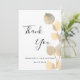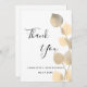 Una tarjeta de agradecimiento por un cumpleaños número 50 (o cualquier edad). Un fondo blanco moda decorado con eucaliptos dorados. En el frente, gran guión escrito a mano de color negro y el texto: Gracias, tu texto, título y una fecha. Atrás: Personaliza y agrega tu nota de agradecimiento y nombre.