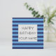 Una plantilla de patrón de rayas azules claras y azules claras con un texto de Cumpleaños Feliz. Haz clic en personalizar para agregar tu nombre.
