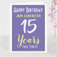 Deseo a alguien un cumpleaños muy feliz con nombre y edad de 15 años. Cambie el nombre y también el número de años si es necesario. 15 años.