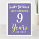 Cumpleaños feliz con tarjeta de nombre y edad de 9