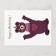 Feliz postal de cumpleaños con un oso dama listo para un fiesta - dulce postal para niños y bebés. Personalizar tu fondo o agrega tu texto.