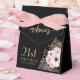 Cumpleaños Gracias Flores Rosadas Cajas Favoras Negras. Personalice con estilo su nombre, edad y fecha personalizados.