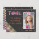 Una tarjeta de agradecimiento de cumpleaños para tus amigos y familia. Carga tu foto y personaliza la tarjeta con tu nombre y texto. La tarjeta tiene un patrón de corazón colorido y estrellas. Excelente como tarjeta de agradecimiento para chicas.