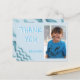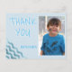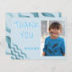 Una linda tarjeta de agradecimiento por cumpleaños con una foto y nota de agradecimiento para sus amigos y familia. Sube tu foto y personaliza la tarjeta con tu nombre. La tarjeta tiene ondas azules en la parte delantera y en la parte trasera. Excelente como tarjeta de agradecimiento para los chicos.