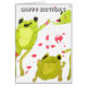 Ilustraciones originales lindas de las ranas verdes. Estos dibujos animados de la rana verde son juguetones y perfectos para el arte de los niños y los amantes de la rana por todas partes. El texto de la tarjeta del feliz cumpleaños es adaptable.