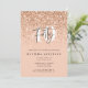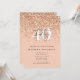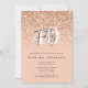 Invitación de cumpleaños con efecto de brillo rosa melocotón femenino número 40. Diseño monocromo de texto con fuente moderna. Parte de una colección.
