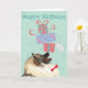 Feliz cumpleaños con este lindo diseño que presenta un lindo Keeshond equilibrando un montón de regalo de cumpleaños en su nariz. El texto se puede cambiar fácilmente; sólo tiene que hacer clic en el botón personalizar.