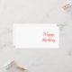 Un diseño rojo y blanco, con una bonita letra de escritura curvada, que dice "Feliz cumpleaños".