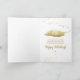 Tarjeta de cumpleaños con racha de oro metálico para resaltar el nombre y los acentos de puntos de oro