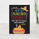 Dé una risita a alguien mientras les deseaba un feliz cumpleaños tardío con esta tarjeta única, que mostraba el mensaje "¡Es el cumpleaños de NACHO! Sí, ese día ya pasó. (¡lo siento!)". El diseño presenta tipografía festiva y colorida con nachos y ilustracion gorra sobre fondo negro. Adentro se puede personalizar con tu mensaje, pero tiene este texto: Lo siento, lo perdí. Espero que haya sido una gran celebración de todos modos. ¡Feliz cumpleaños tardío!