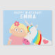 Diseño personalizado de un chica y unicornio con texto personalizado.