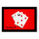 Una fotografía de cuatro cartas de juego - un 2 de espadas, 3 de corazones, 4 de clubes y 5 de diamantes - es el tema de mi "¡Cumplir 14 años es un gran negocio!" tarjeta de cumpleaños. Las cartas de juego, que suman 14 puntos, se muestran muy bien con un fondo rojo brillante.