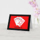 Cinco "10" de cubiertas de cartas de juego, fotografiadas con un fondo rojo brillante con un borde negro, son el tema de mi tarjeta de cumpleaños "Turning 50 Is A Big Deal". ¡Los 5 "10" suman 50 y eso es todo!