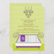 Comience bien su evento con nuestra moda y elegante invitación Baby Shower con una cuna de bebé sobre un fondo verde lima con una lámpara de araña. Elegante y de moda Invitación de Baby Shower para una niña. Sólo personaliza con tu información y estás listo para irte. En nuestra tienda también hay artículos de primera necesidad, como franqueo para la ducha de bebé, pegatinas de favores, tarjetas de agradecimiento y pegatinas de agradecimiento. ©Blackleaf Studio