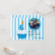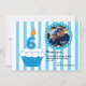 Termina tu celebración con este adorable quequito gracias. Tiene un fondo de rayas gruesas, azules y blancas. A la izquierda hay un gran quequito con el fondo de un punto polka azul, glaseado blanco con una gran vela de 6/6. En la parte superior derecha hay un círculo donde personalizas con tu propia foto. Consulte los muchos otros diseños y productos de esta línea. ©Ilustraciones JW