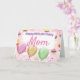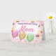 Tarjeta de cumpleaños rosa cubierta con globos y pastelitos y un mensaje cambiante en el interior.