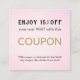 Moderno salón de belleza simple descuento Cupón estilo minimalista que se puede actualizar fácilmente con su foto y texto. Si necesita ayuda para personalizar este producto, por favor contáctenme con el botón de mensaje de abajo y estaré encantado de ayudarle.