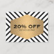 Coordina con el patrón retro Mod en blanco y negro con la plantilla de tarjeta de presentación Gold Emblem a las 12.00 horas. La caja de oro metálica falsa llama la atención sobre tu promoción de descuento. Personalizar los campos con tu propio texto e información. Estas tarjetas de cupón de descuento son excelentes para salones, boutiques, peluquerías, tiendas de regalos y más. © 1201AM CREATIVE
