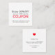 Elegante patrón de cupón de personalizable para salón de belleza. Diseño de moda moderna con icono del corazón rojo. Este cupón es una gran herramienta de marketing para recompensar a sus mejores clientes. Perfecto para salones de belleza, peluquería, maquillaje, masaje, uñas o profesionales relacionados con la belleza.