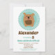 La invitación de cumpleaños de este niño incluye un perro marrón gracioso con lengua rosa en un fondo turquesa.