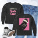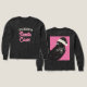 Funny camisa de manga larga para Navidades chicas de color rosa, blanco y negro dice "Todavía creo en Santa Caws" en el frente. En la parte trasera, una corona de estampado retro con un sombrero de Santa contra un fondo rosado angustiado. He dejado el texto completamente personalizable en esta camisa si prefieres un dicho diferente, pero también puedes dejarlo como está. ¡Feliz Crowmas! Foto y diseño de Amanda Renee, CtrlZ Digital Designs 2025