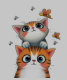 Two wide-eyed kittens gaze up as playful honeybees buzz around them on a soft pastel backdrop—whimsical charm perfect for kids’ decor or cheerful print.