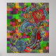 Los rizos florales son originales, abstractas, de arte moderno y de texturas de patrones metálicos. El fondo es un patrón geométrico digital y collage de tejidos, todo hecho con Adobe Photoshop CS2.