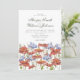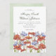 Romántica invitación de bodas de verano con flores de la médula del agua/ flores silvestres y hierba. Flores como los rojos de amapolas y las flores azules.