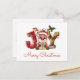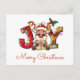 Envía alegría y paz a tus seres queridos con esta linda postal de felicitación de Feliz Navidad que incluye "alegría" escrita con lujosos tipos de letra y reno bebé con sombrero de Santa, , berry holly y sentada en lugar de "O". Tiene un mensaje "Enviándote los saludos de la temporada con todo mi amor y ovaciones. Que la luz de los Navidades te dé paz y felicidad".