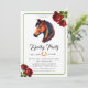 Moderno Race Horse Derby Fiesta Invitación ecuestre Moderna Carrera de Caballos Derby Invitación de fiesta con el ilustracion de un caballo de carreras con jockey y patrón a rayas en la espalda. Todos los elementos de texto se pueden cambiar para que este diseño pueda ser utilizado también para otros eventos: elegante invitación a boda ecuestre, fiesta de cumpleaños a caballo, fiesta de observación derby, apertura de establos y más. El fondo, el color del ilustracion y los colores del texto se pueden cambiar con la herramienta de diseño!