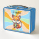 Un zorro bebé lindo sostiene un personalizado Kawaii de boba o de burbuja. Caja de almuerzo personalizada.
