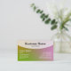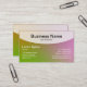 Una plantilla de tarjeta de visita con un área de encabezado semitransparente curvada para el nombre de la empresa y el tipo de negocio, etc, con el nombre, el título del trabajo y otros detalles de contacto en la sección siguiente. El panel Fondo y cabecera se repiten en el reverso y se pueden personalizar más.
