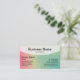Una plantilla de tarjeta de visita con un área de encabezado semitransparente curvada para el nombre de la empresa y el tipo de negocio, etc, con el nombre, el título del trabajo y otros detalles de contacto en la sección siguiente. El panel Fondo y cabecera se repiten en el reverso y se pueden personalizar más.